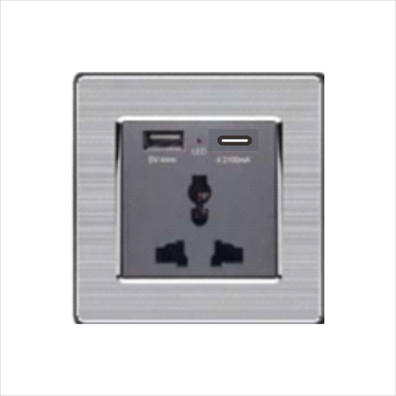 Bộ ổ cắm 3 chấu đa năng và ổ cắm 2 chấu và 1 cổng USB + 1 Type C cổ điển S2 series MÀU XÁM (C1B432)
